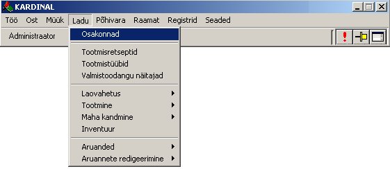 Menüü "Ladu" alla on koondatud kaupadega seotud toimingud ja aruandlus.