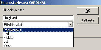 Hinnakirjad avaneb aken "Hinnakiri", kus esitatakse