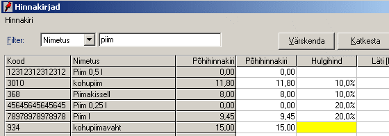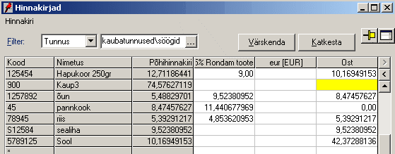 hinnakirjadega. Teises veerus on võimalik hindu muuta.