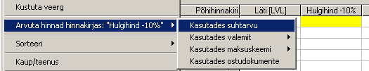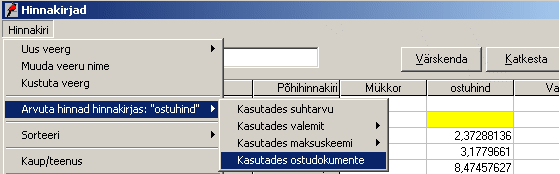 hinnakirja hindu lähtuvalt erinevatest parameetritest: suhtarv, valem, maksuskeem, ostudokumendid.