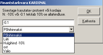 - Allahindlus hinnakirjale - hindade asemel sisestatakse allahindlusprotsendid ja lisaks näidatakse hinnakiri, mis hindade leidmisel aluseks võetakse.
