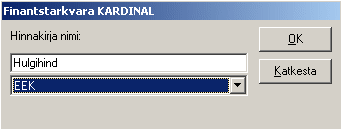 Muuda veeru nime - võimaldab muuta valitud hinnakirja nime. Avaneb aken hinnakirja nimega, kus on võimalik seda muuta. Nime ei ole võimalik muuta põhihinnakirjal.