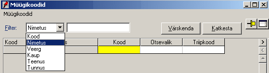 • Kood - filter seatakse kaubakoodi või selle osa järgi