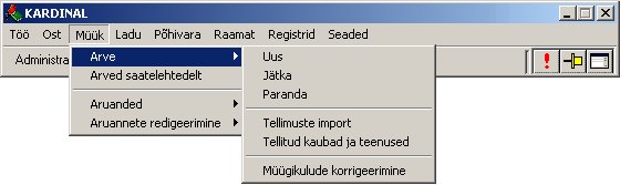 Menüü “Müük” alla on koondatud müügiarvetega seotud informatsioon - arvete sisestamine ja parandamine, müügitellimused, müügiarveid puudutavad aruanded.