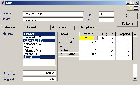 NB! Põhihinnana näidatakse kaubakaardil tööjaama seadetes lahtrisse "Müügihinnakiri" määratud hinnakirja hinda!