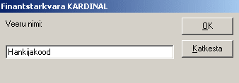 Uue kooditabeli loomiseks tuleb teha akna "Müügikoodid" menüüst valik "Uus veerg". Seejärel küsib programm uue kooditabeli nime: