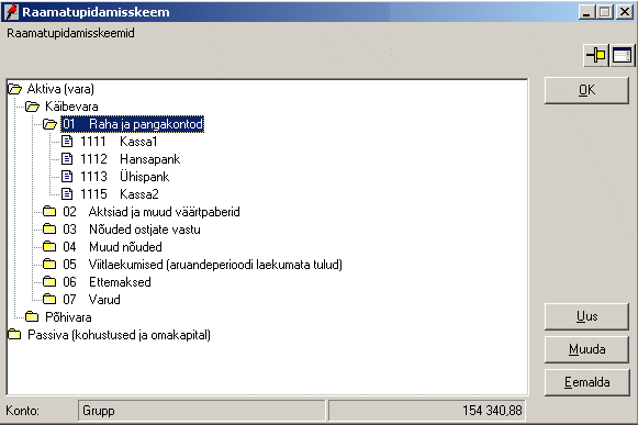 Avades akna “Raamatupidamisskeem” (Raamat -> Raamatupidamisskeemid):